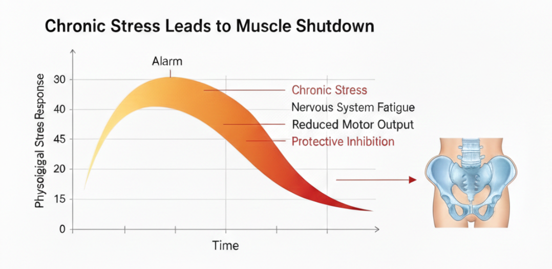 - The Root: Prolonged stress leads to Neuromuscular Exhaustion. The “wiring” has effectively shut down to conserve energy, leaving the muscles weak and unresponsive.